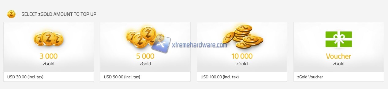 Iniziamo con il dire che la valuta zGold ha un tasso di conversione di 100 zGold = 1 Dollaro e sono disponibili pacchetti zGold – da 3.000, 5.000 e 10.000 o eventualmente un Voucher Code.